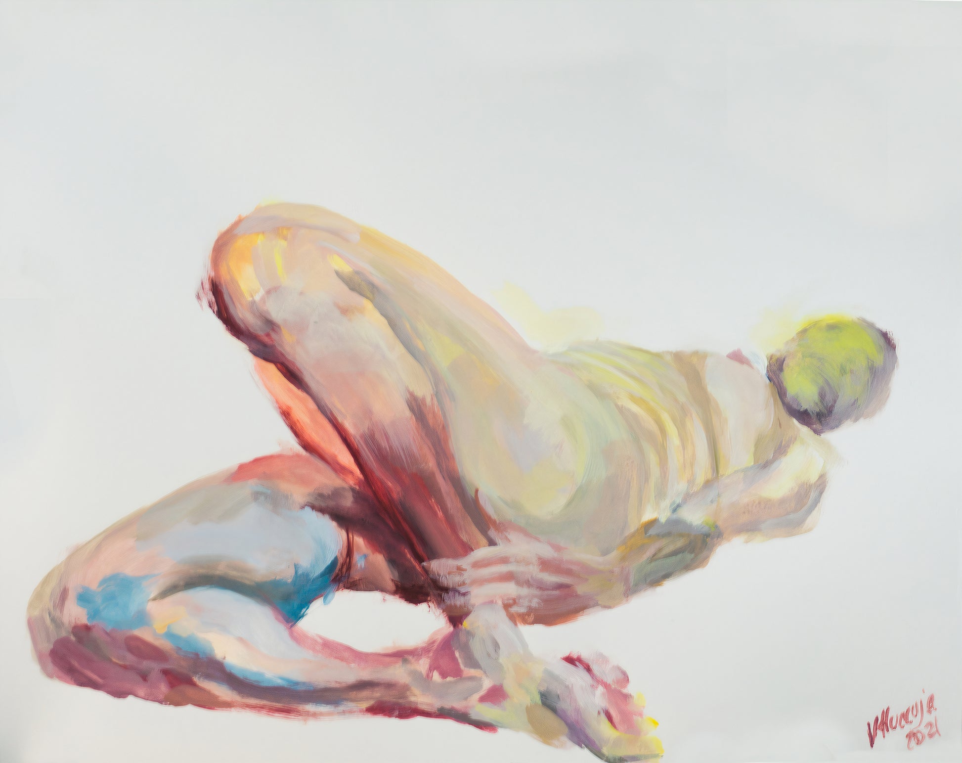 Asisto a talleres de pintura con modelos físicos. Realicé este trabajo en una de esas sesiones buscando descifrar cuál era el estado emocional de la mujer que posaba para nosotros, los asistentes.