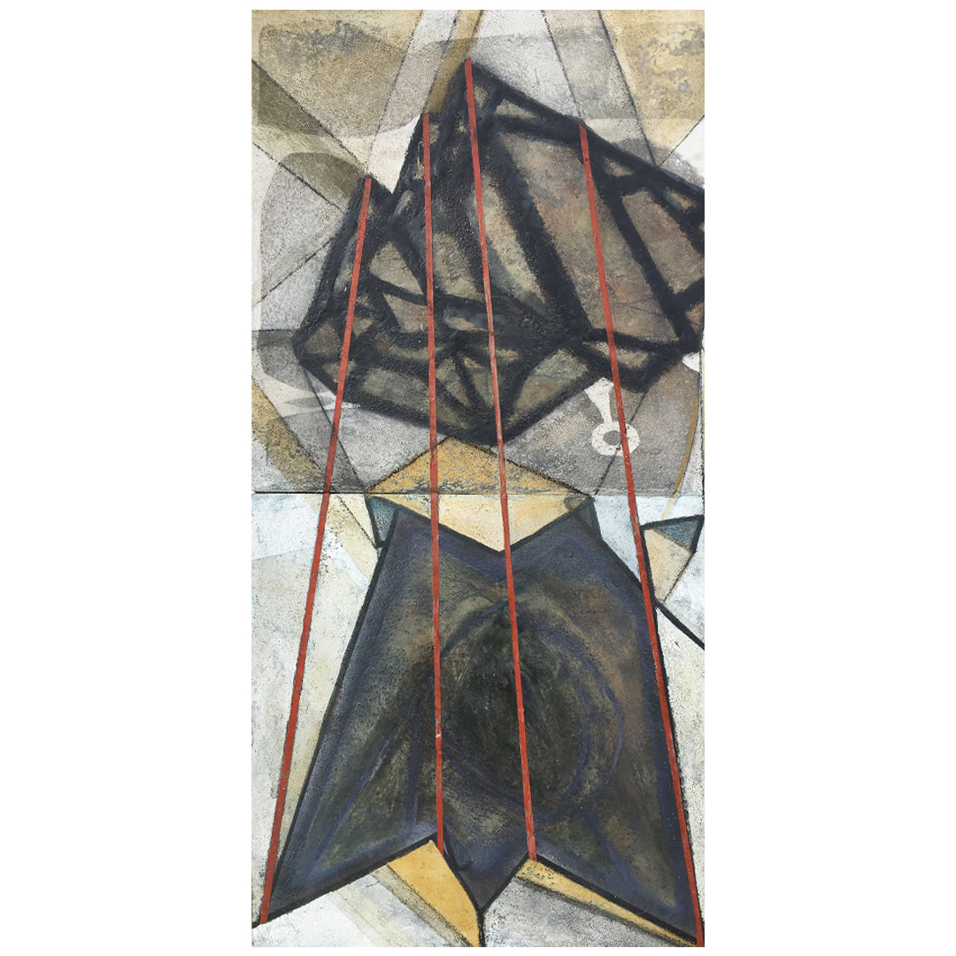 Esta obra forma parte de una serie de pinturas que contienen aspectos de carácter abstracto y simbólico, utilizando la dualidad y el equilibrio como eje principal. La asimetría como eje estético, un elemento para crear composiciones dinámicas usando formatos duales horizontales y verticales. El uso del color, tierras, carbón. ceniza, ceras, oleó, acrílico y pigmentos, materiales que contienen en si aspectos simbólicos, Formas geométricas que interactúan con ambientes orgánicos.