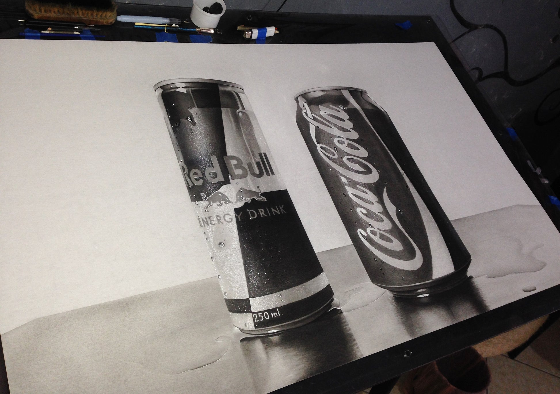 En el día a día tenemos una batalla interna, un vicio, algo que mejorar. En esta pieza se libra esa batalla metafórica con 2 bebidas que nos pueden causar un vicio o una necesidad constante del consumismo.