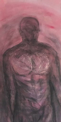 De la serie “LIBERA-2”, esta obra alude, de manera osada, a la interpretación del mundo, tras lo oculto. Colores cálidos, trazos oscuros, marcas grabadas en la piel de un mártir anónimo, vuelto a ser liberado. Obra que se enmarca, una vez que “el secreto es develado”, en la silueta, en las huellas y en la repercusión permanente del agravio en la condición física, pero también, en las marcas del cuerpo sutil, propio de un animus al decubierto. Obra sin enmarcar.