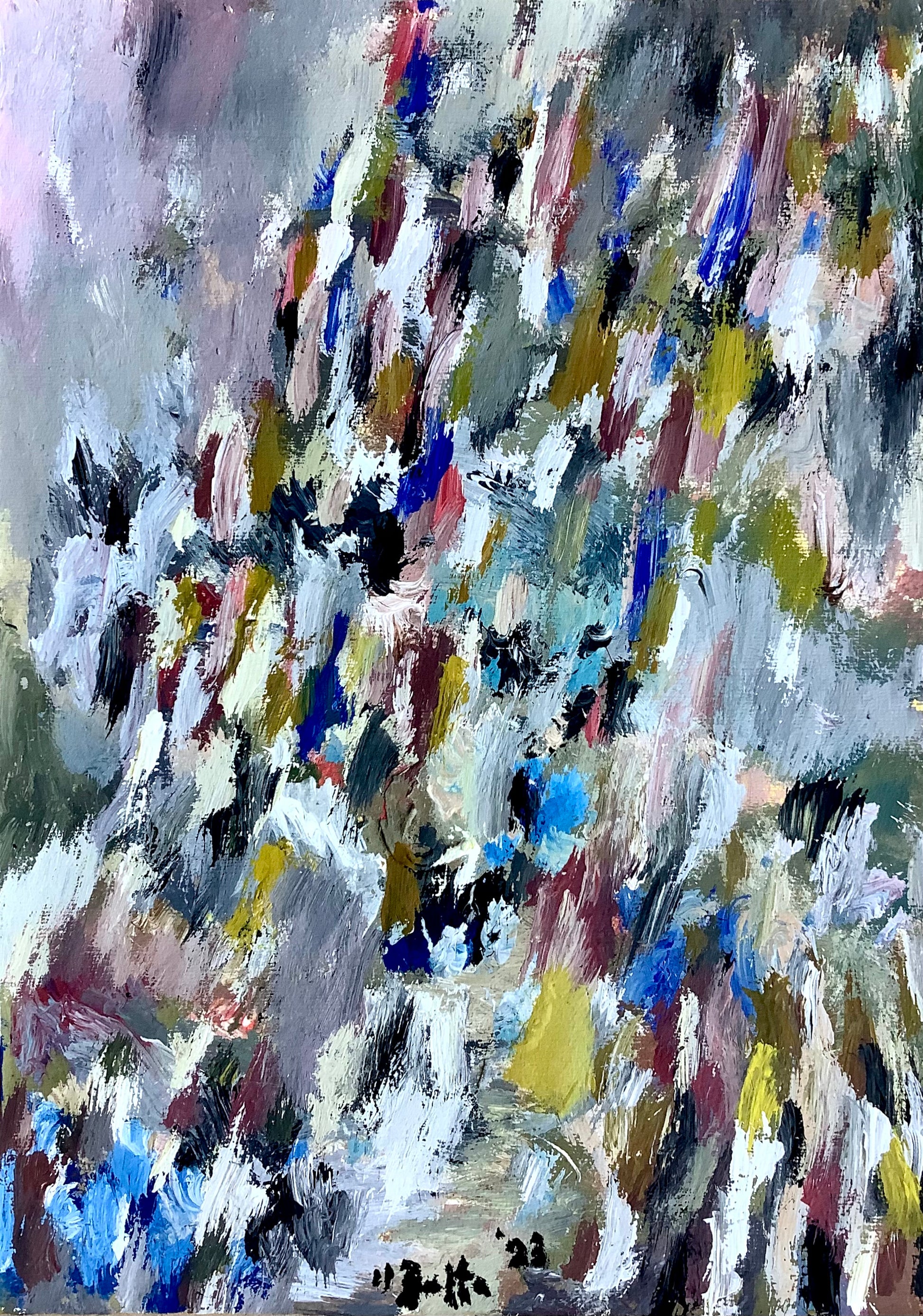 Pieza de la serie “Pela ojo”. Una serie de obras de corte abstracto experimental que mezcla principios del impresionismo y el expresionismo abstracto, donde las manchas de color, luz y sombra evocan a la naturaleza y la vida.