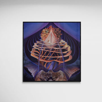 Esta obra de gran formato celebra la relación simbiótica entre las aves y las semillas, elementos fundamentales en el ciclo de la vida y en la perpetuación de la naturaleza. En el centro, una semilla de apariencia cósmica actúa como un portal a nuevas dimensiones, con un ave en vuelo que se acerca a ella, simbolizando el viaje y la transformación.