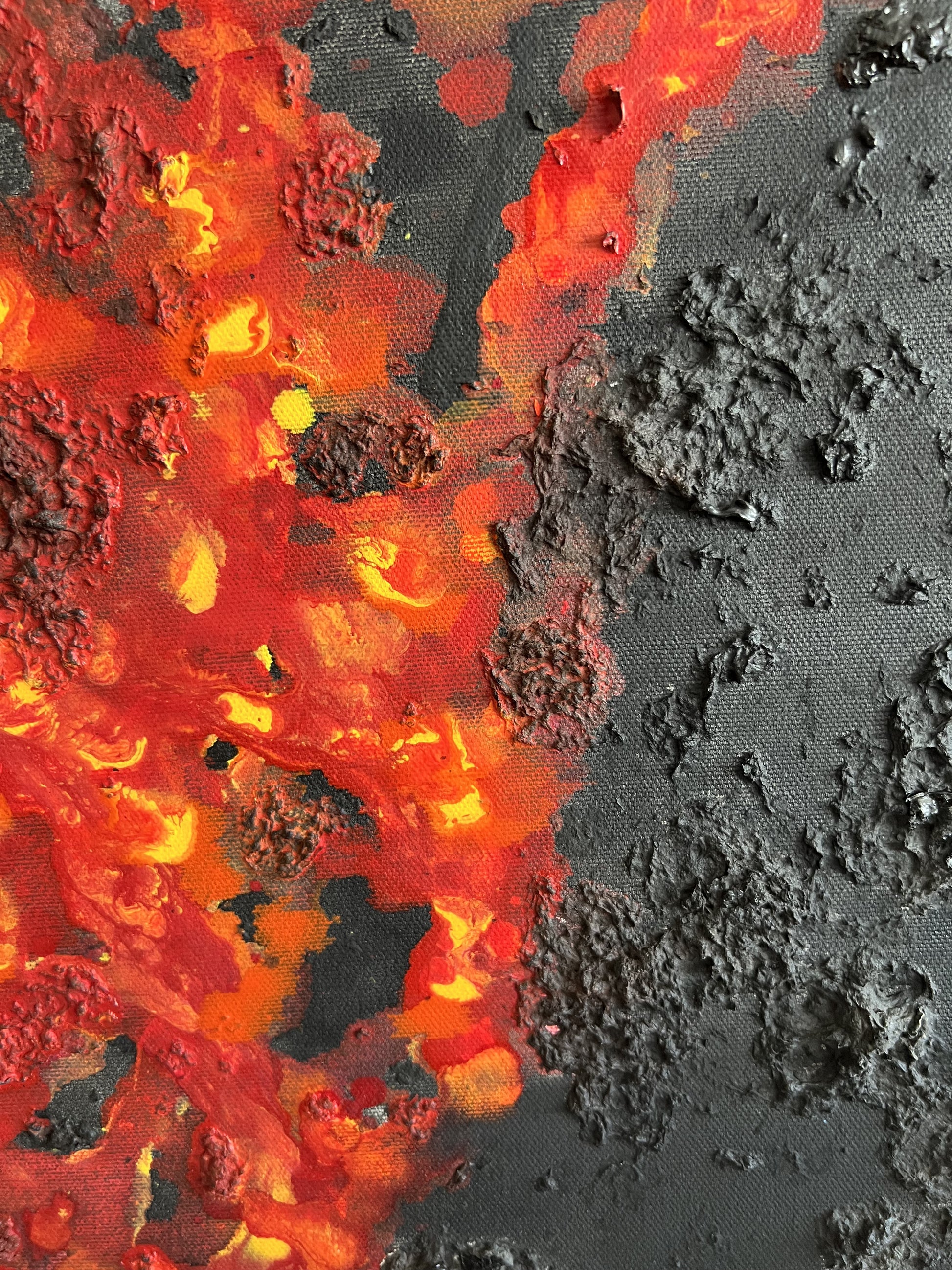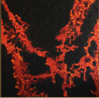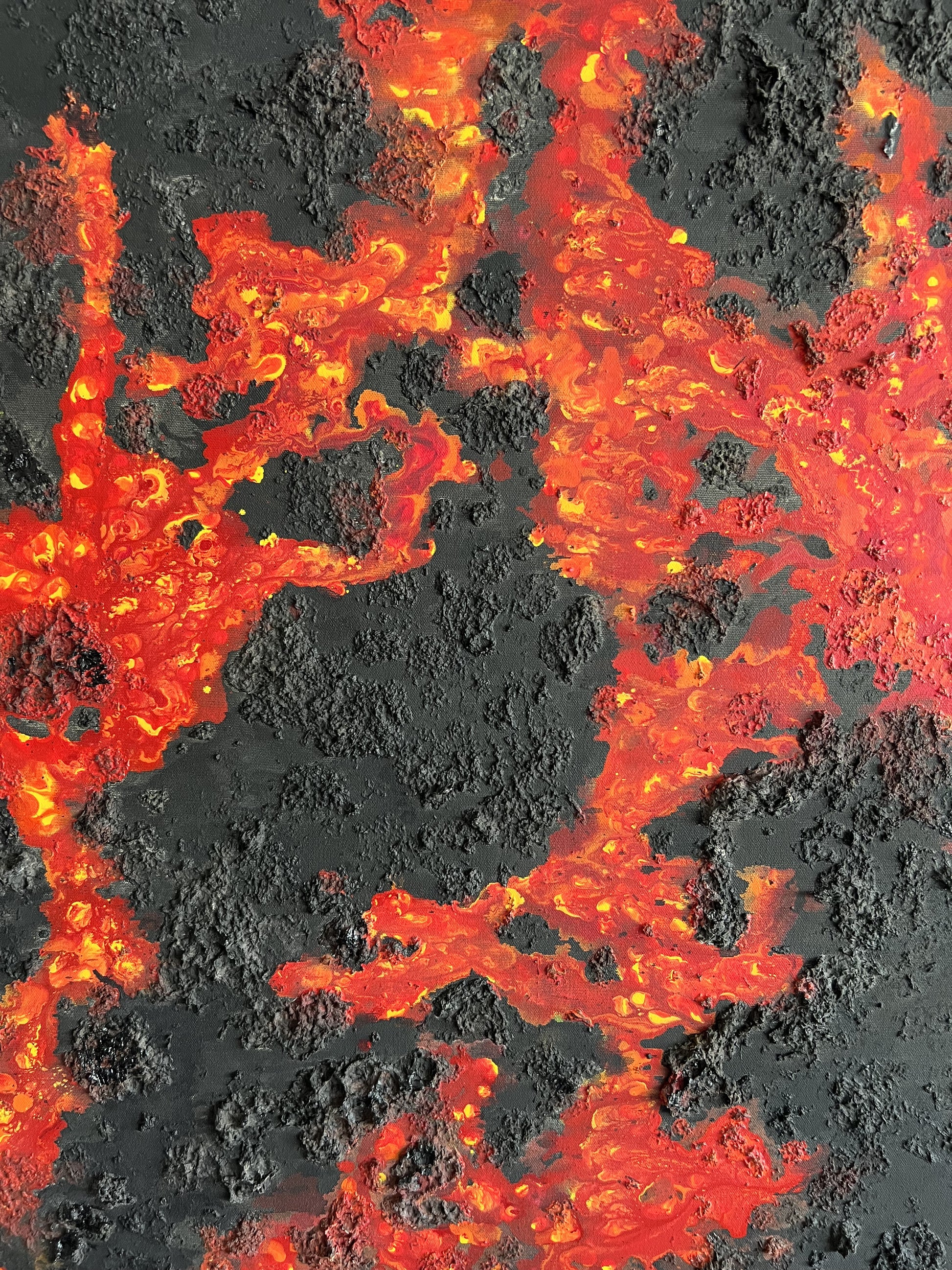En “Vulcan”, la energía ya no es contención, sino fractura, no es núcleo, sino trayecto encendido, es el registro del espíritu al abrirse paso a través de su propio límite.