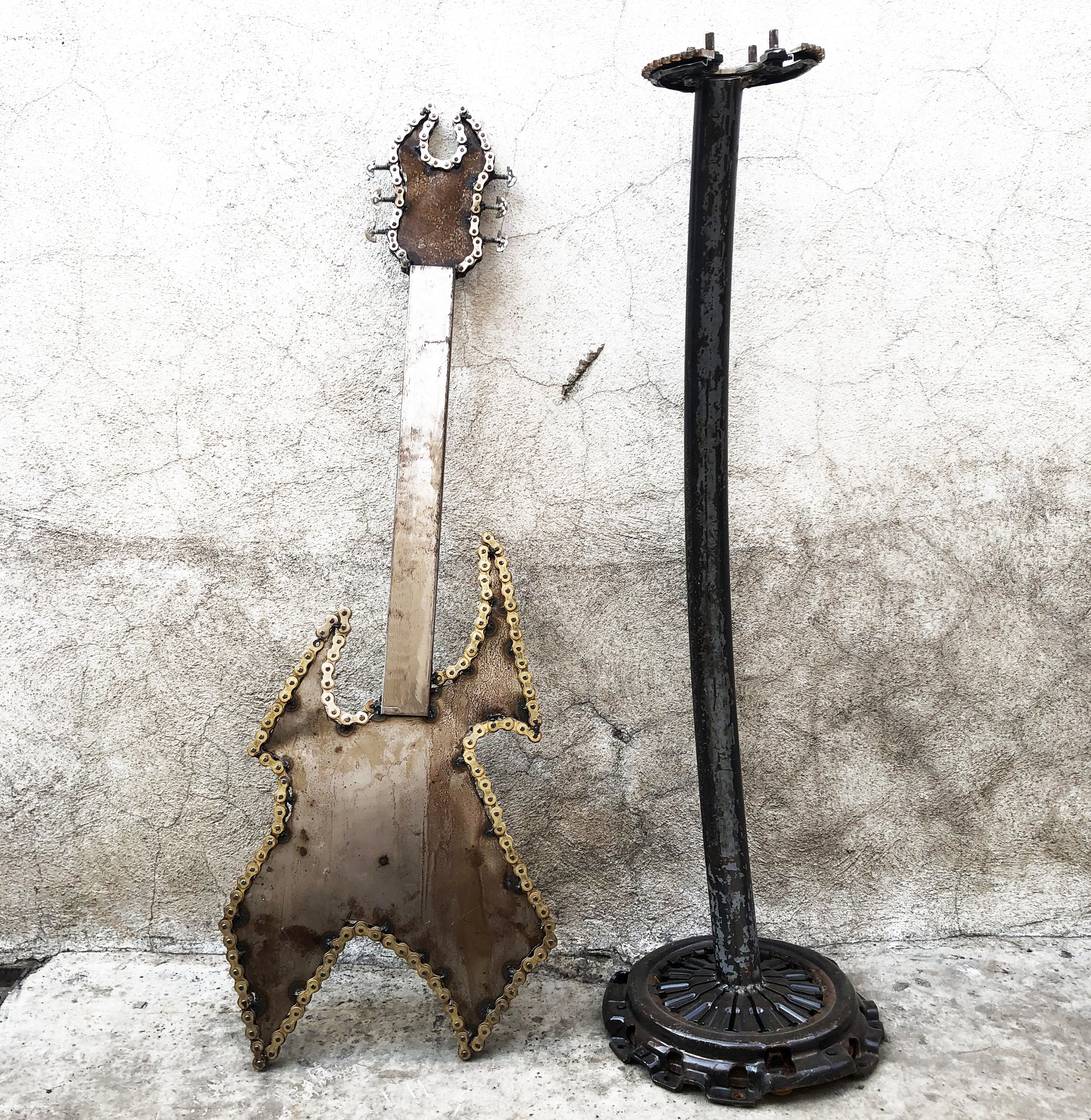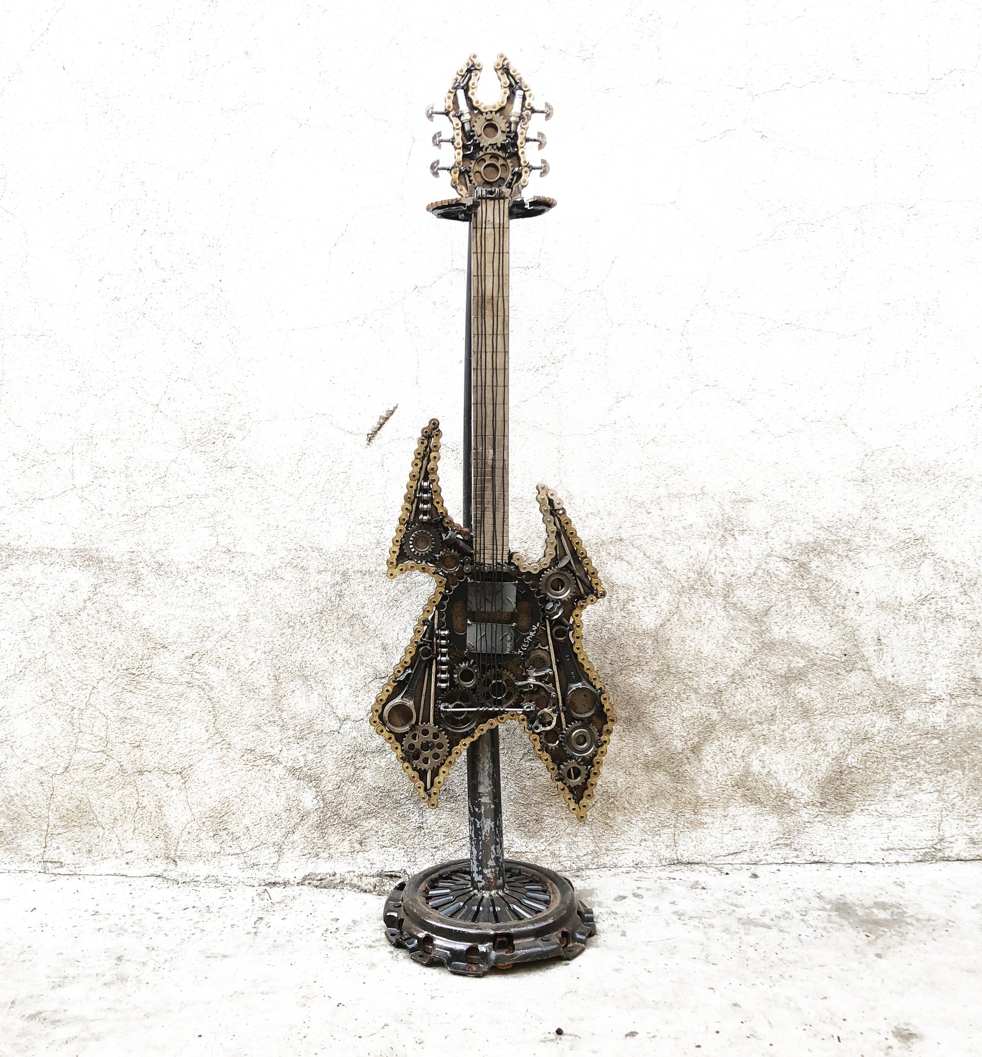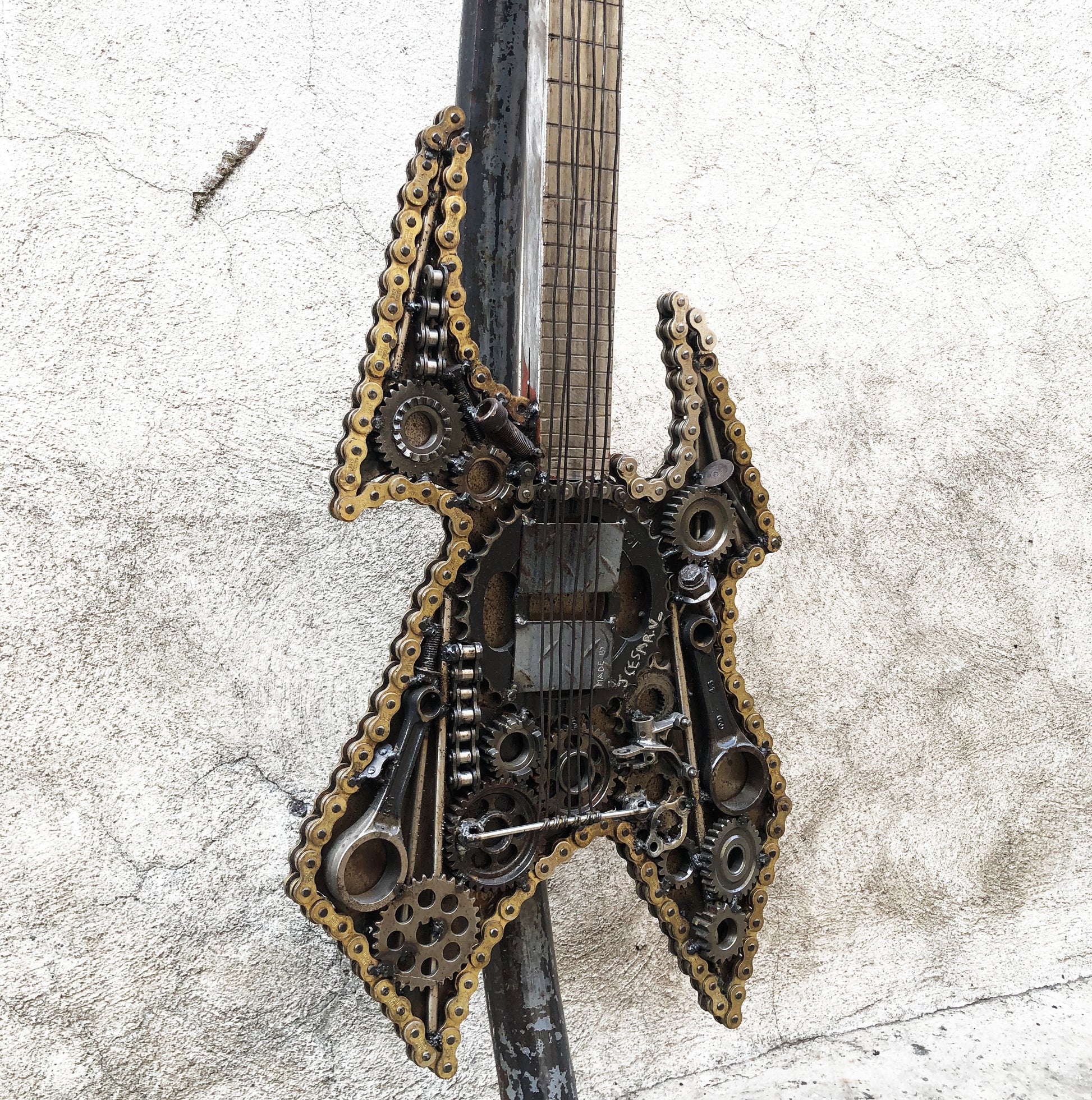 Escultura tamaño real de Guitarra utilizada principalmente en los sub géneros del Metal Extremo.