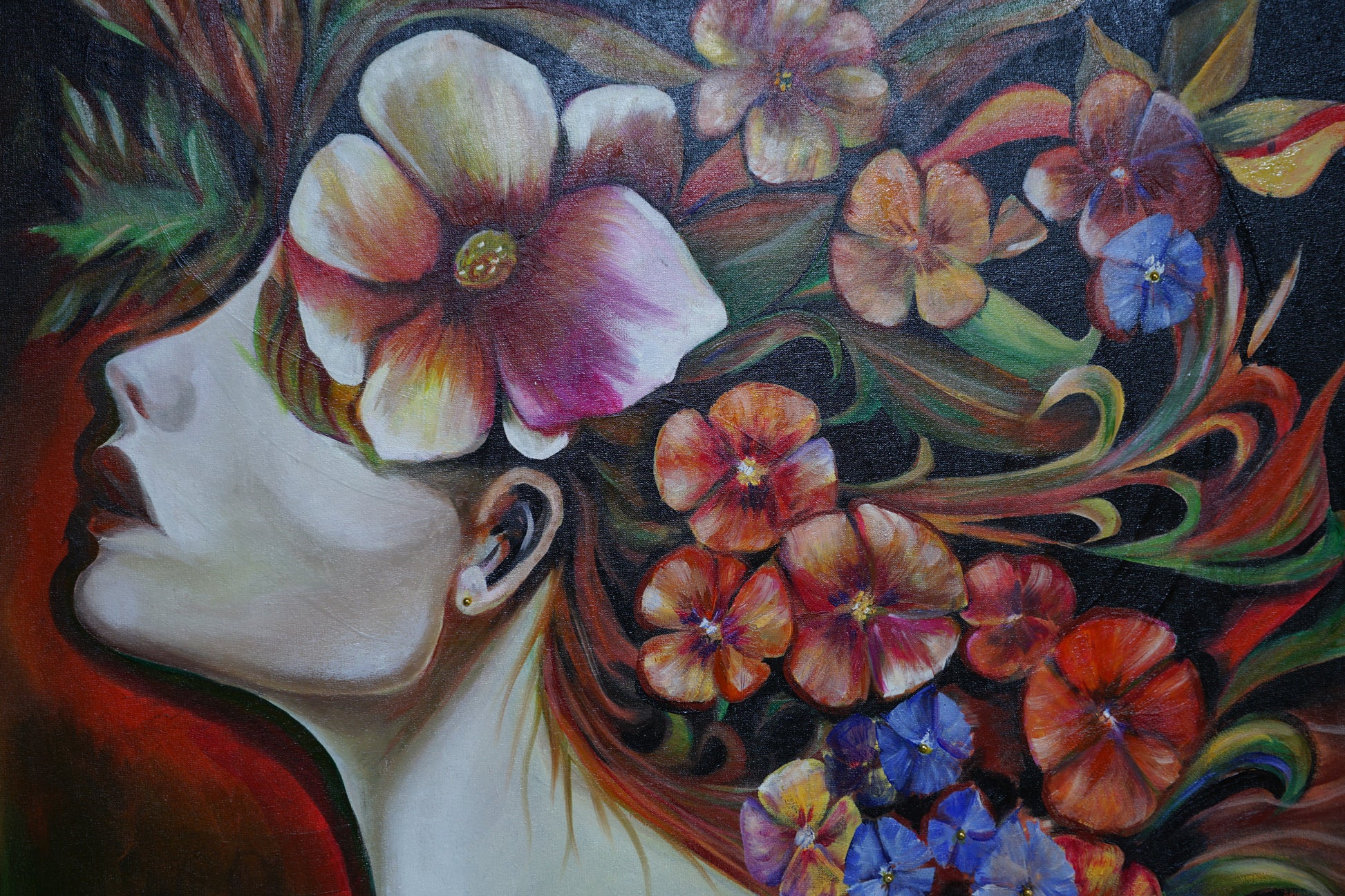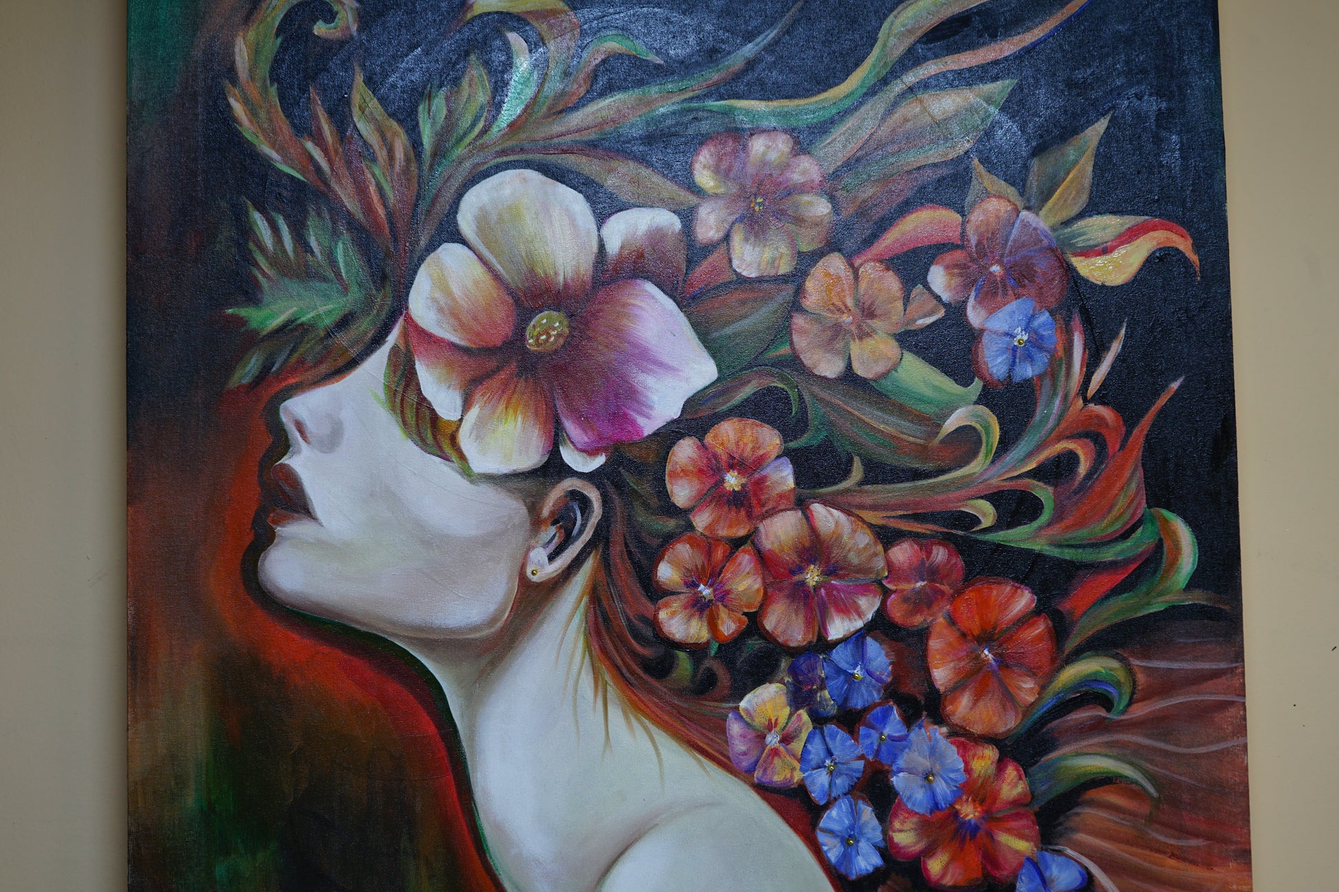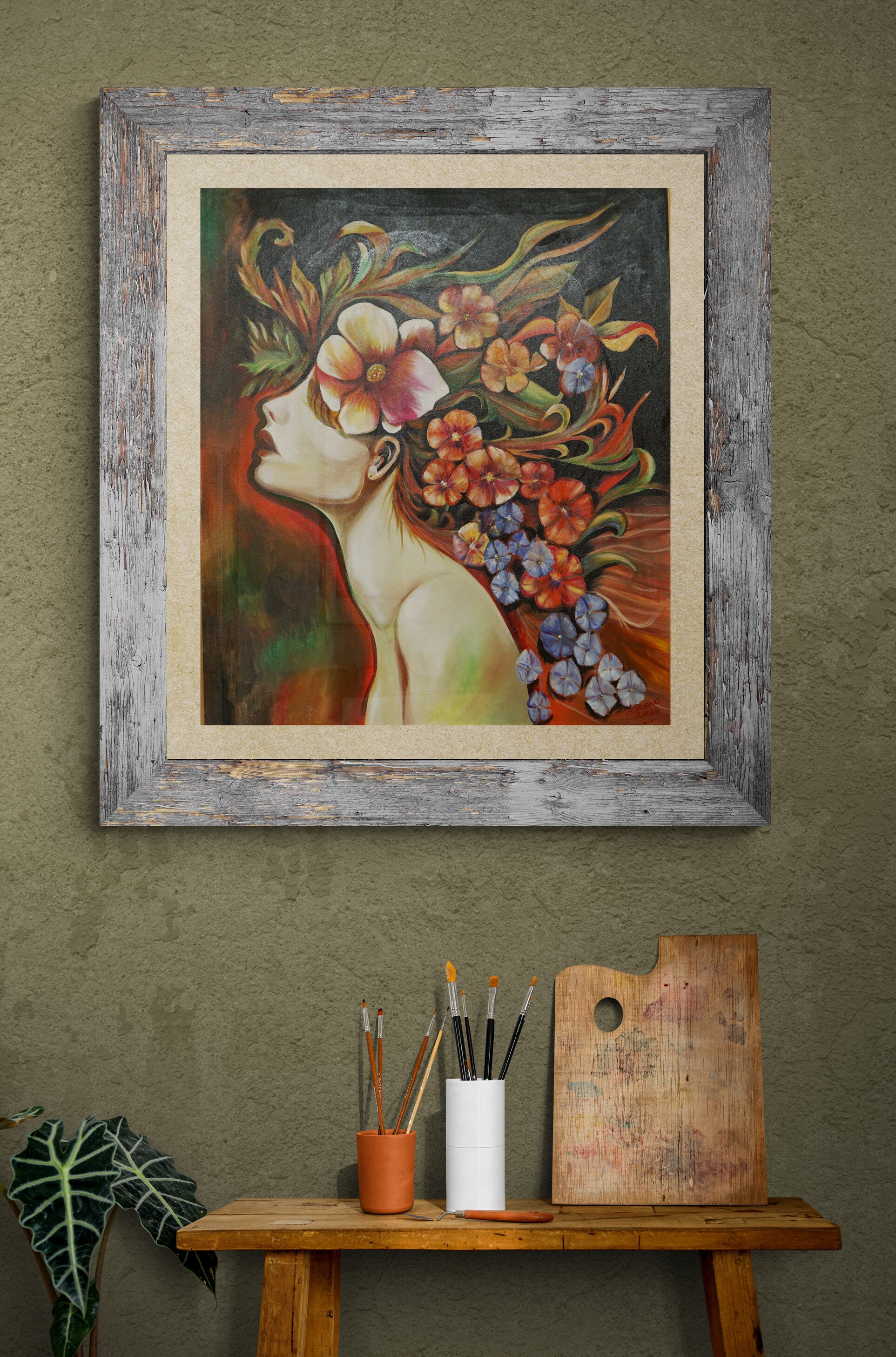 Este cuadro representa la belleza de la mujer con la belleza de la fauna.