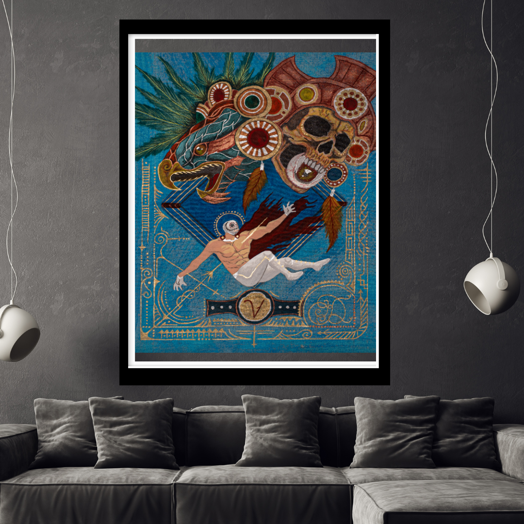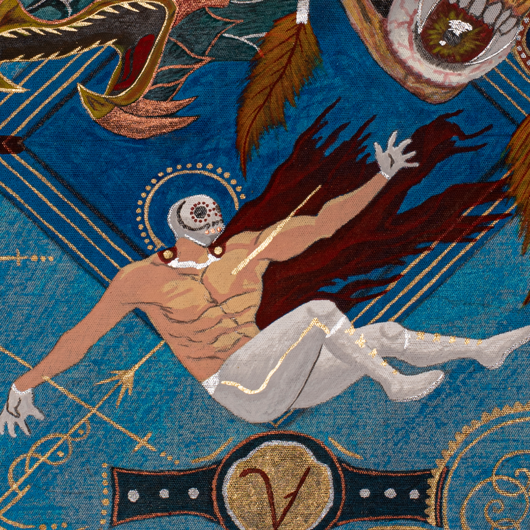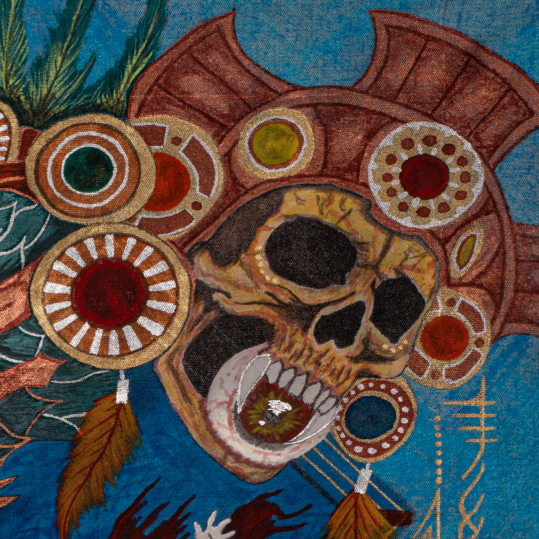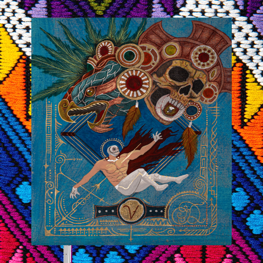 Concepto: Xibalbá, es una colaboración internacional llamada "Mascaras y Leyendas" llevada de la mano con Andrómeda Galería para celebrar el arte mexicano representado a través de algo tan emblemático como lo es la lucha libre mexicana, promoviendo la cultura y tradición nacional, en este caso Xibalbá muestra una representación onírica y surreal del duelo entre la vida "Quetzalcóatl" y la muerte "Mictlantecuhtli" de un individuo, plasmado a través de un luchador como lo puede ser cualquiera.