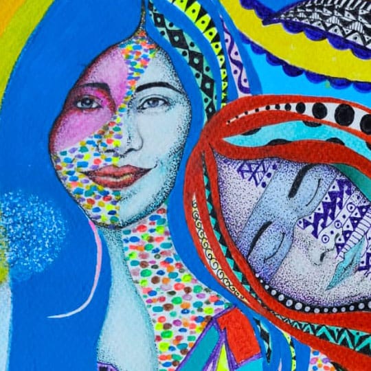 Acrílico y tinta china con punta de plata sobre papel Fabriano de 350grs