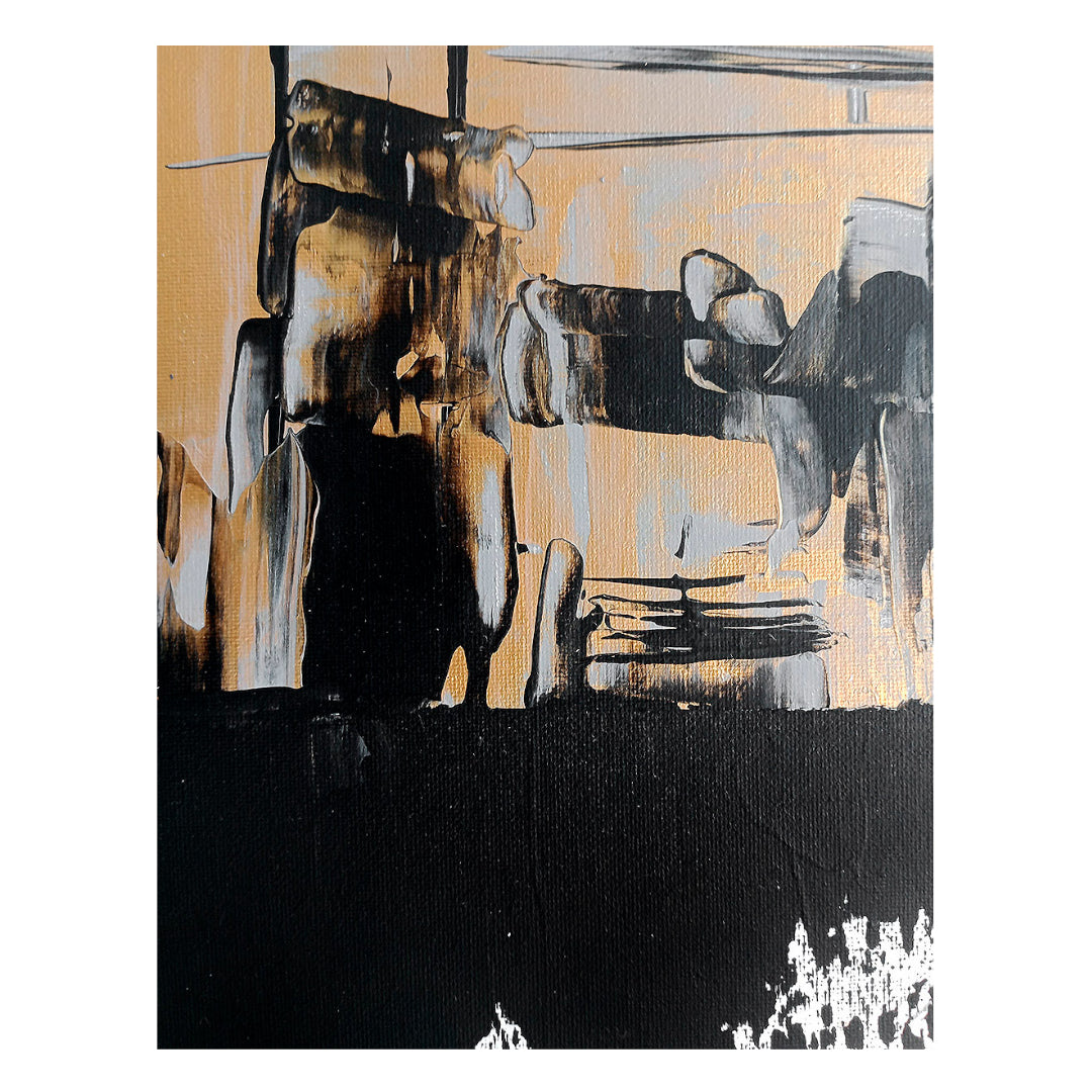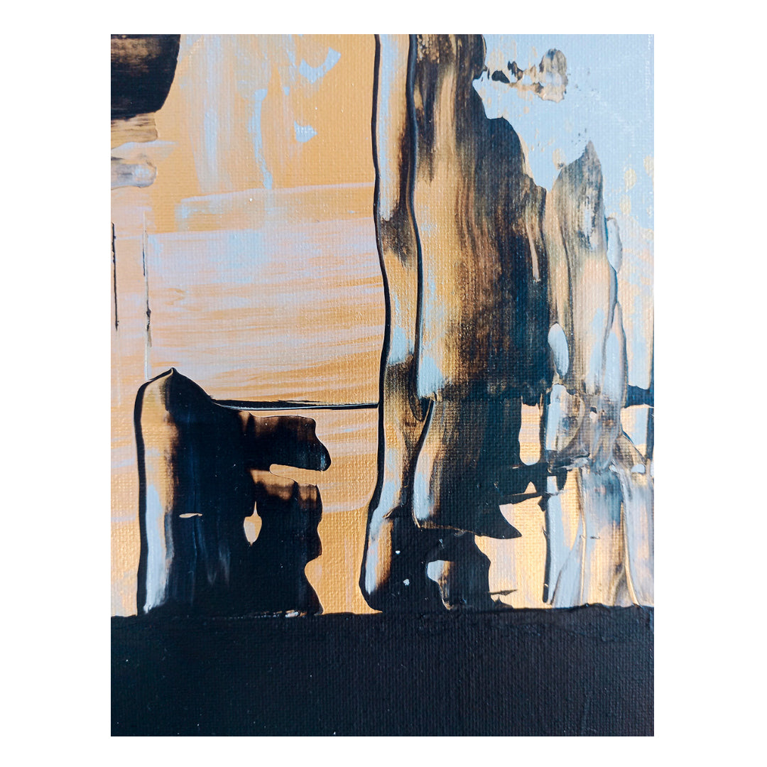 Cotton canvas frame with brushstroke, texture, and scraping techniques.